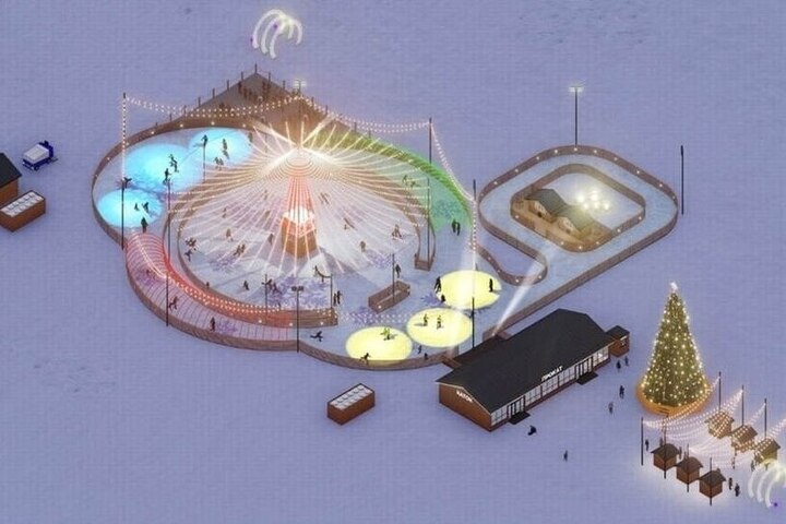 Как и в Ярославле, каток будет иметь основную часть и ответвления. Основное пространство будет круглым. В центре будет островок с фигурами в морской тематике. Еще должен быть куб с LED-экранами для трансляций и тематическими фотозонами.