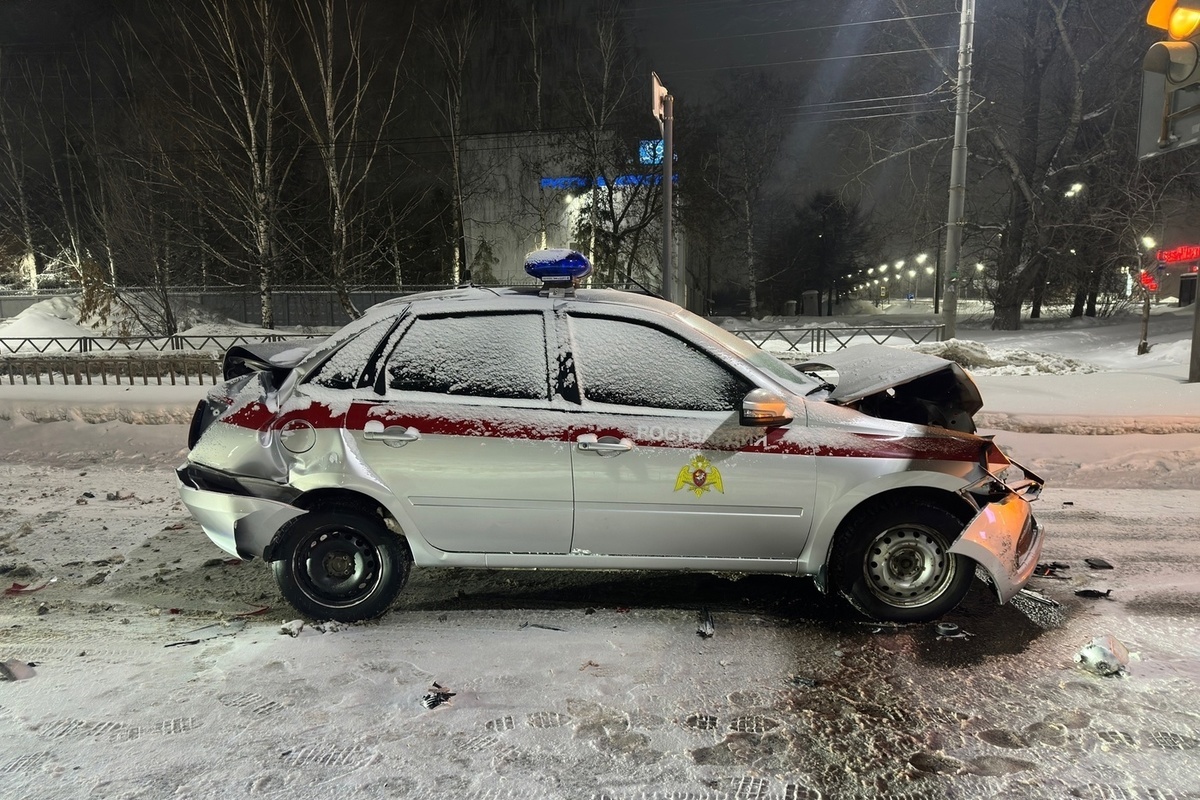 В Ярославле произошло ДТП с участием патрульной машины Росгвардии. Поздно вечером на Большой Федоровской у дома 103 желтый автобус въехал в зад машине Росгвардии, стоявшей на светофоре. В результате машина патрульной службы оказалась зажата между автобусом и кроссовером «Джили».