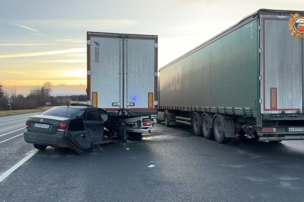 Случилось ДТП днем на 282 километре ФАД М-8 «Холмогоры». По какой причине 25-летний водитель автомобиля Volksvagen Polo совершил наезд на большегруз выясняется.
