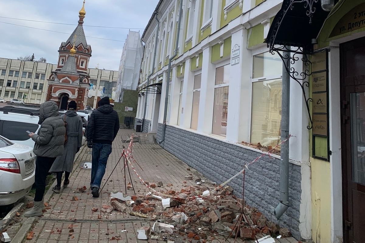 В Ярославле утром 19 ноября  у дома 3 по улице Депутатской в Ярославле осыпалась кирпичная кладка.  Часть фасада обрушилась на тротуар. К счастью, прохожих было немного, и никто не пострадал.