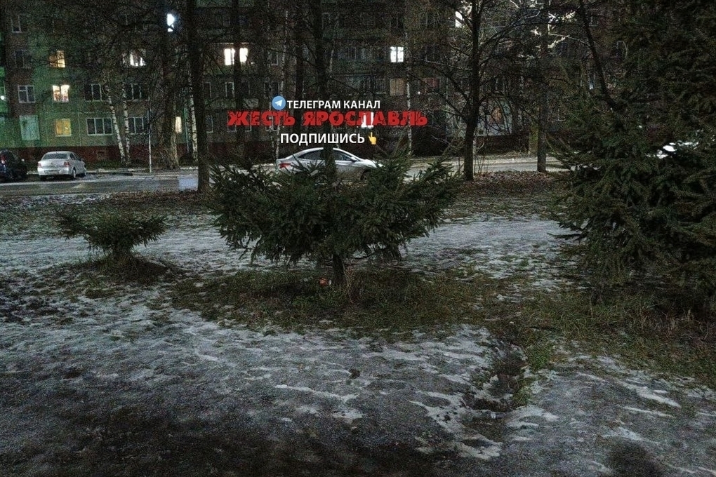 Жители Дзержинского района сетуют по поводу кражи красивых голубых елочек на клумбе у магазина.