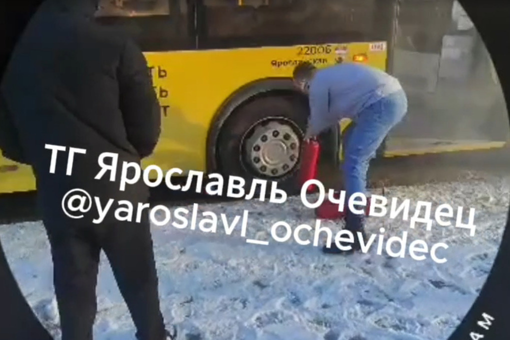 Пассажиры пытались привлечь внимание водителя к тому, что от колеса идет запах горелой резины. Но водитель остановил автобус и высадил пассажиров только у ЯМЗ. И только после этого достал огнетушитель и начал тушить колесо.