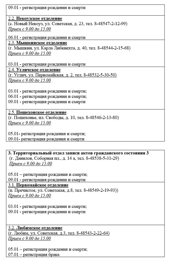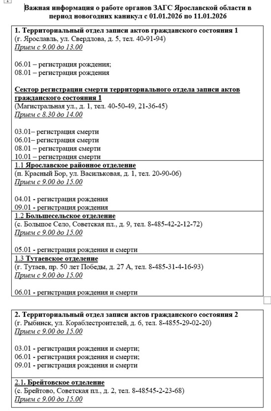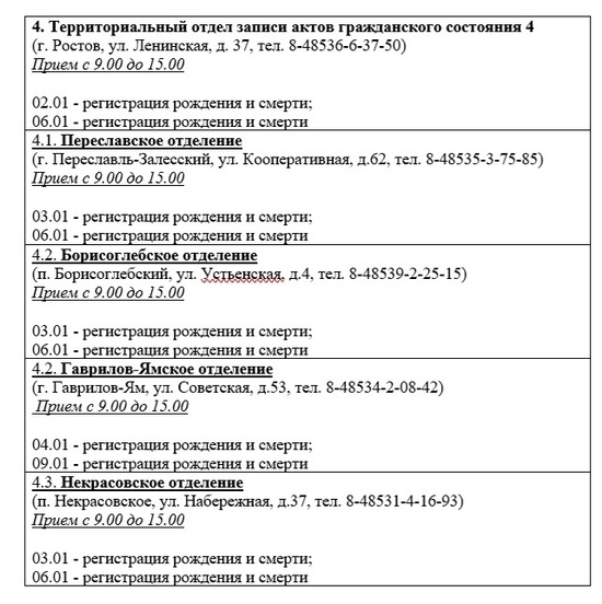 График работы отделов ЗАГС