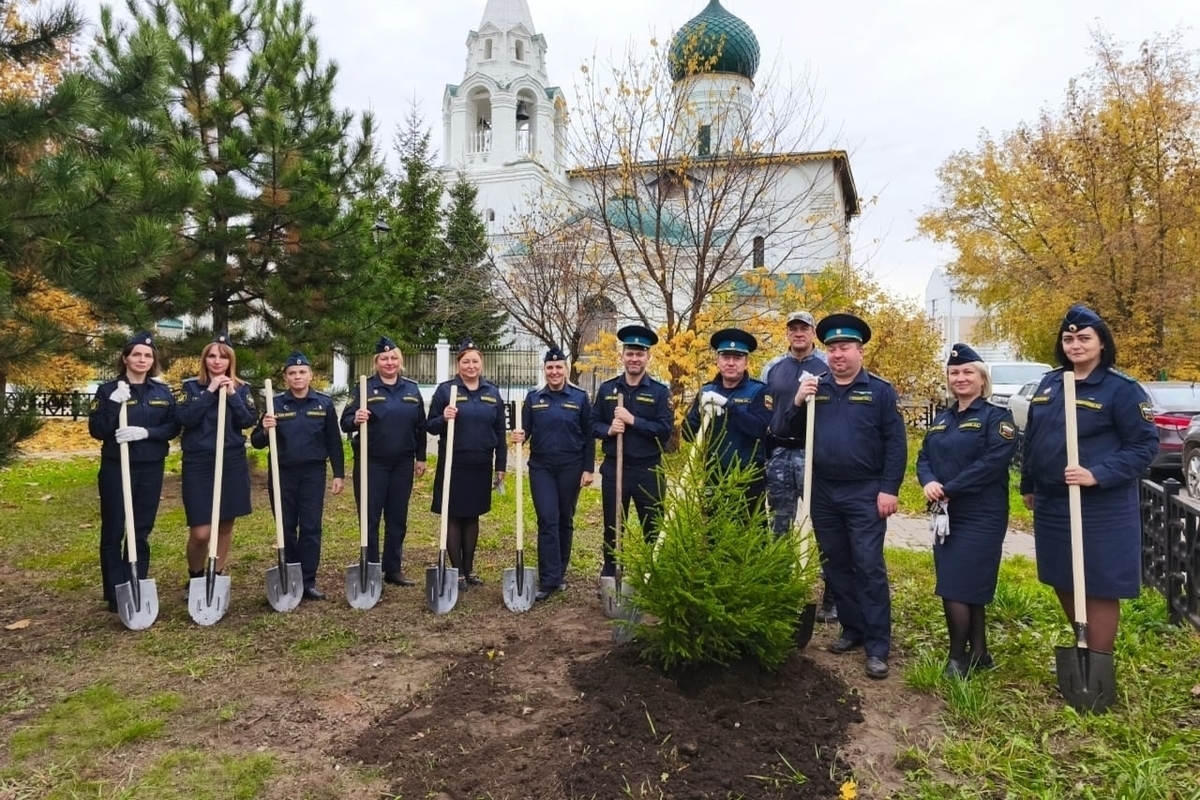Сотрудники регионального Управления ФССП провели минувшую пятницу с пользой для города. Они высадили в Дмитриевском сквере г. Ярославля, на территории храма Похвалы Пресвятой Богородицы еловую аллею.