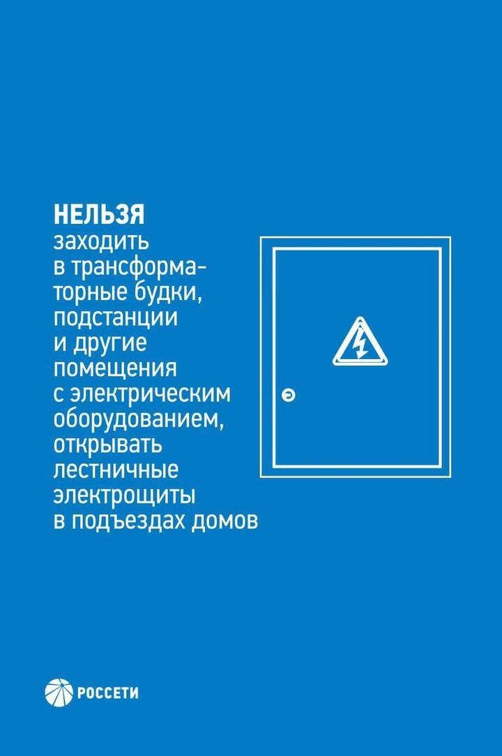 •  Нельзя проникать внутрь трансформаторных подстанций, открывать лестничные электрощитки и электрические щиты в зданиях, срывать замки с дверей энергообъектов;