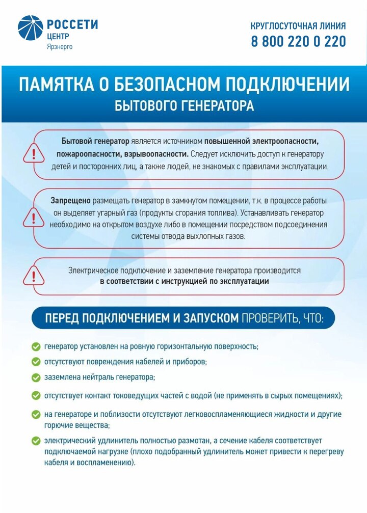 С наступлением холодов у жителей загородных домов возрастает спрос на бытовые генераторы. Энергетики филиала ПАО «Россети Центр» - «Ярэнерго» напоминают, что подключать их к сети могут только квалифицированные специалисты, строго соблюдая инструкцию.