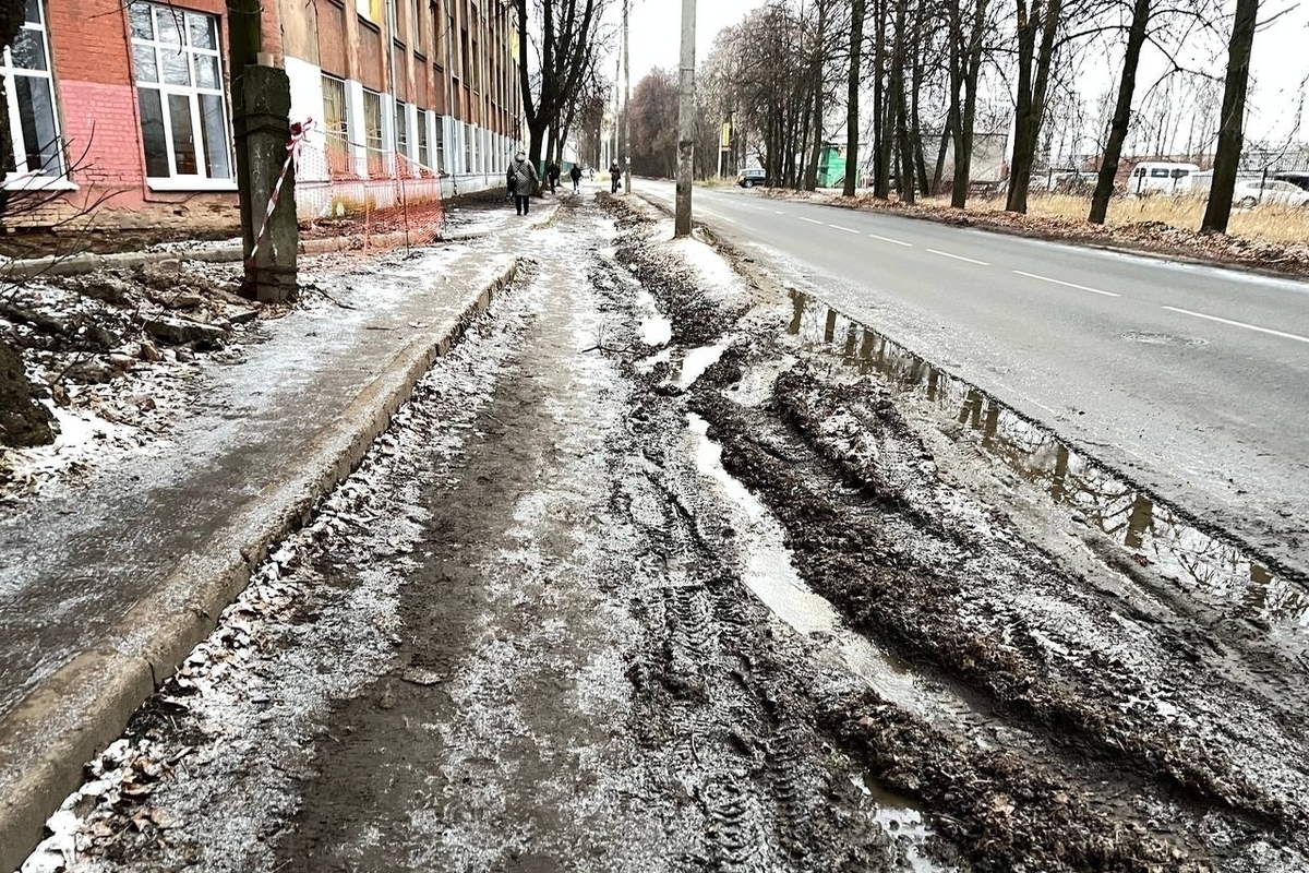 Ведет он сразу к двум колледжам. Ходить здесь вынуждены сотни молодых людей. Тротуаром на этом участке является разбитая в хлам плитка, ямы и грязь. Эта «пешеходная зона» при малейшем дожде превращается в непролазное болото. При этом выбор у пешеходов небольшой – либо месить грязь на газоне, либо идти по проезжей части.