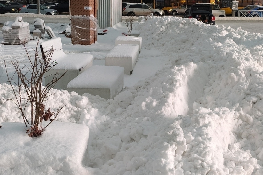 В Ярославле  на обновленной площади Труда начали складировать собранный с ближних улиц снег.  Жители Ярославля, которые хотели посидеть на обновленных лавочках, были расстроены. К лавкам теперь не подойти – вокруг высятся метровые сугробы.